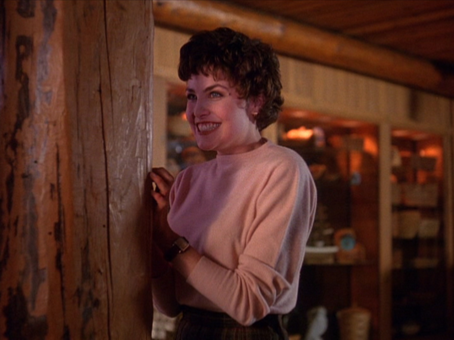 The next morning, she observed FBI Special Agent Dale Cooper as he drank his coffee and they introduced themselves to each other as he allowed her to sit with him. She told him her connection with Laura Palmer through her brother, Johnny. Forming a crush on the special agent, she asked him more questions.[4]