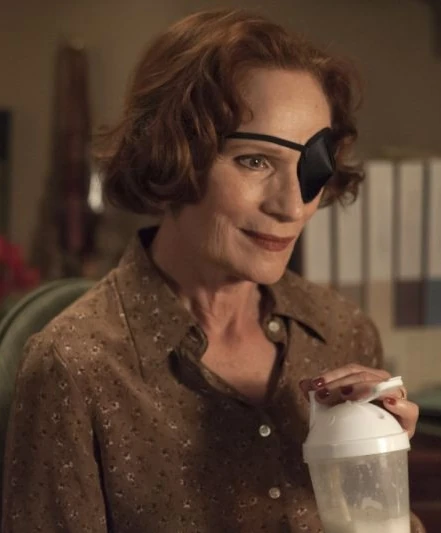 The next day, she sat with Doctor Jacoby and Ed, the latter who wished to have a divorce, but Nadine does not understand, as she believed they were only dating. She then noticed her blindness in her left eye, apparently having gone unnoticed, despite her eyepatch.[1]