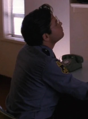 An unidentified security guard at the Philadelphia FBI offices watched cameras on February 16, 1988.[1]